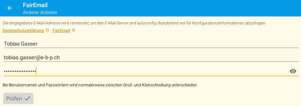 Auf den folgenden Seiten wird für die Screen-Shots jeweils das Konto tobias.gasser@e-b-p.ch verwendet. Bitte entsprechend auf IhrName@stammfriends.com anpassen!